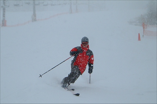 北横岳の帰りにピラタス蓼科スノーリゾートでテレマークの写真撮影をお願いした。 回数券を3回分だけ買って、カメラマンの前で激しくターンを試みるが、目の前で思いっきり転んでしまい鼻で笑われてしまった。