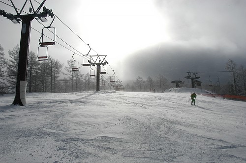 猛吹雪で滑っていても止まりそうなゲレンデは、転んでも何とも思わないほどフカフカである。ジャンプテレマークターンやワンステップテレマークターンの練習をしながら大回りの高速ターンを楽しんだが、それを見ていたリフトのおじさんに褒められた。