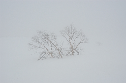 菅平スキー場で小回りの練習をしてから根子岳にチャレンジするが天候が悪くて何も見えない。