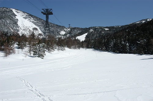 シーズン最終日で、1日券が2000円と破格だったので思いっきり滑ることにした。ゴンドラを利用して4kmの林間コース10本とクワットリフト5本乗ったので、40kmぐらい滑っただろうか?前日に30cm以上積もったので、この時期の雪としては申し分なかった。