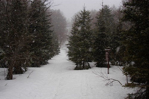 回数券を使い切ってから烏帽子岳方面へ歩き出したが、思っていた以上に雪が少なく雪も降ってきたので烏帽子岳を諦め湯の丸山からゲレンデへと戻った