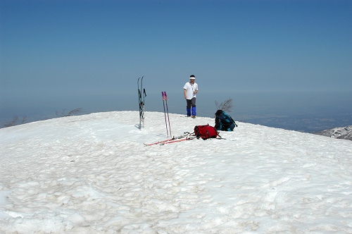 日本海が薄っすら見てたけど春霞の影響で海岸線がハッキリしなかった。