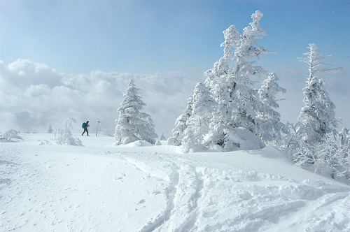 今シーズン初ツアーに選んだ根子岳は、30cmほど新雪があって、ヘリスキーも運行されてなかったので、ツアーコースはパフパフ状態だった。パウダーを求めてピステンが掛かった場所から離れると、積雪が少ないので笹地獄の罠にはまり、ときどきフラフラしていたが、とても楽しかった。