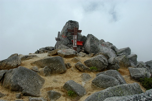 北沢尾根から南駒ケ岳に登り、越百山経由で下山したが、今回も朝露でズボンと靴がビショビショになってしまった。 南駒ケ岳の頂上で越百山経由で登ってきた人と情報交換をするが、あちらも本日初めての登山者ということで、人が少ないんだと実感する。