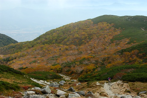 紅葉狙いで木曽駒ヶ岳から縦走しようと思ったが、次の日の天気が微妙すぎて池山尾根からピストンすることにした。避難小屋付近の紅葉は終わりかけで、青空とタイミングが合えば、素晴らしい景色が見れるかもしれない。帰りに池山に立ち寄って、まあまあ満足した。