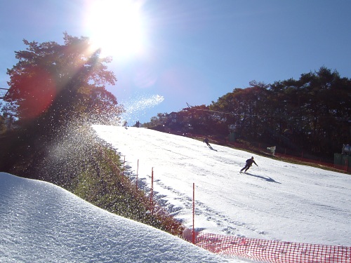今年から2コースとなり、初滑り料金の500円を払ってクジ引きにチャレンジするが大外れだった。 最初はカチカチの斜面だったけど、だんだんと雪が融けてコブが出来上がり、なかなか楽しいゲレンデ状態になる。2時間ぐらいでシャリシャリの状態になるが、昨年より人口密度が低いので滑りやすい。