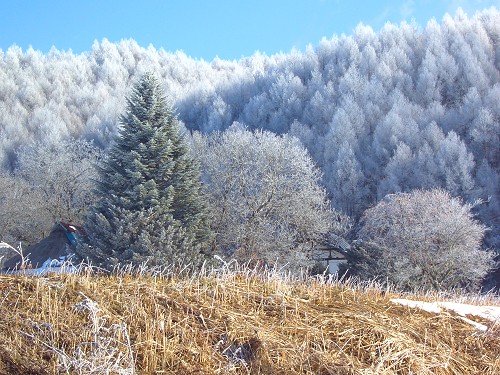 横ズレに強いヒンジ付きのサポーターを装着して湯の丸スキー場へ出かけてみる。途中、とっても綺麗な樹氷を見れたけど、綺麗な雪化粧を見るのも久々である。 まだ膝が痛いので、4本ほど滑って終了したが、何とか滑れるようになったので大満足。午後は新しいブーツを買いに松本まで行ってみる。