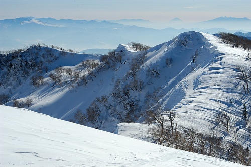 終始ラッセルしながら稜線に到着。正月だから入山者が多いと予想していたが意外と少なかった。途中で追い越していった人のトレースは、アップダウンが激しかったので遠慮させてもらったが、リハビリついでにラッセルできたので結果的には良かった。 ちょっと重めの雪だったが、妙高では当たり前なのかな?ファットスキーだったので快適に飛ばせたけど、平坦になってから結構運動したような気がした。