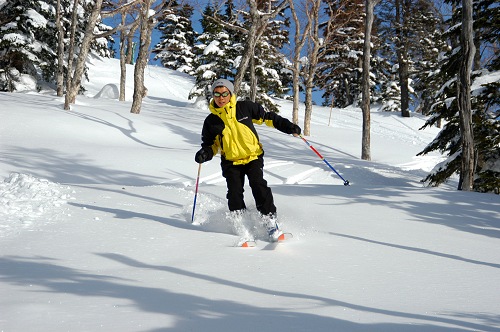 靱帯が治ったら、万座温泉でスキーをして、のんびり温泉に入る事を夢見ていたが、パウダーシーズン中に治りそうもなかったので、新しい板のテストを兼ねて武田さん誘う。 大雪が降ると予想して万座温泉スキー場に出かけてみたが、日本海側は綺麗に晴れていて、ちょっとだけパウダーだった。最近の天気予報は、まったく当たらないような気がする。