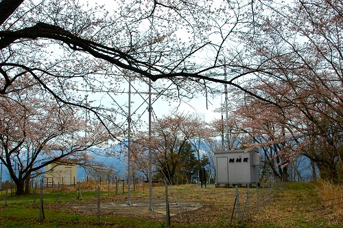 山頂にテレビアンテナが乱立してて、満開の桜を見るには少し早かったようだ。