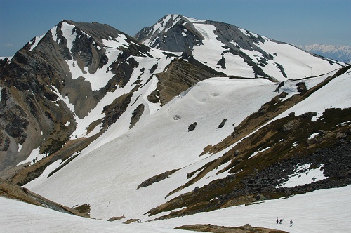 前日に頑張りすぎて慢性的な疲労が残り、白馬尻で撤退しようかと悩むが、青空の誘惑に負けてヘロヘロになりながら何とか山頂に到着。 既に足が終わっているので、数百mごとに止まって息を整えたが、快適なザラメに助けられて楽しく滑ってこれたので、6月初旬まで普通に滑れそうな気がしてきた。