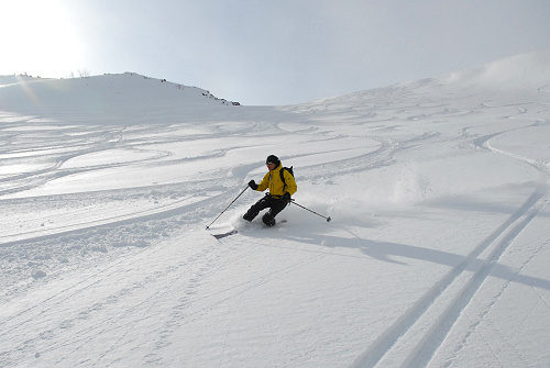 パックされた粉雪は、程よく滑りやすくて何となく良い雪だったが、帰る頃には斜面がズタズタになっていた。