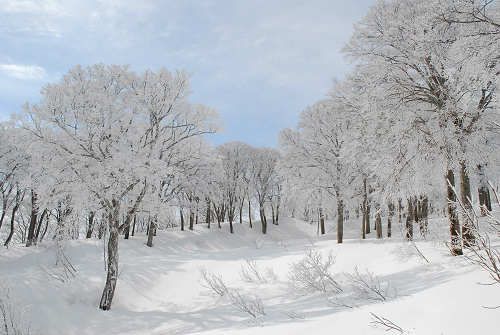 いつもの場所で準備してると、犬を連れて散歩にやってきた地元の人と遭遇する。雪祭りとスキー場の雪不足で、だいぶ雪を持っていったと聞かされていたが、藪を気にせず滑れたので良かった。