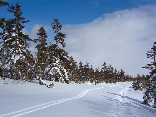 ゲレンデパウダーを存分に頂いてから位ヶ原に行ってみる。完全に春の雪となってしまったが、滑る雪だったので重くても気にならなかった。