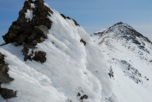 前日に雪が降っていたので、乗鞍岳周辺もパフパフの雪が積もっているかと期待していたが、位ヶ原周辺はボコボコのカリカリで、まったく楽しくなかった。山頂周辺にピカピカの斜面もあって、久しぶりにアイゼンのトレーニングが出来て良かった。