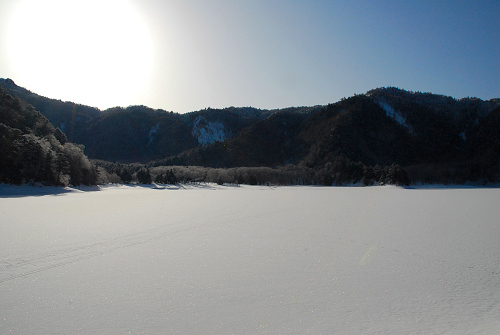 前日に薄っすらと雪が積もったようで、誰もいない大沼池を横断してスッテプソールの爽快感を味わったが、山で滑るにはちょっと厳しい条件だった。