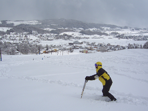 電話でスキー場の様子を確認すると、前日から雪が降り続いた雪が20cmほど積もったらしい。深い場所では60cmほどあったけど、帰り際までノートラックの斜面で遊ぶことができたので楽しかった。