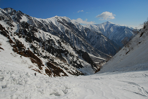 午前中ぐらいは晴れてるかと思っていたら、予定より早く雪が降り始め、ついでにホワイトアウトとなり、足元しから分からなくなってしまったので、ダラダラと横滑りで帰ってきた。
