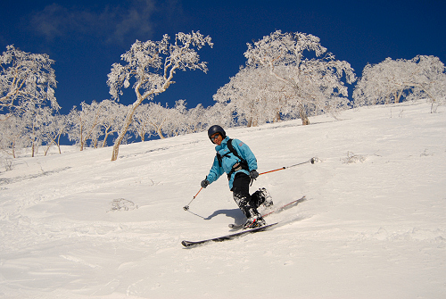稜線付近の吹き溜まりには、前日から降ったと思われる雪が50cmほど積もっている。 目まぐるしく変わる雪質だったけど楽しく転ぶことができた。