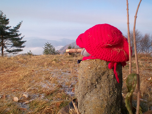 山に登るつもりは無かったけど、天気が良かったので頂上まで往復する。霜が降りていたのでEVAサンダルでは厳しかった。