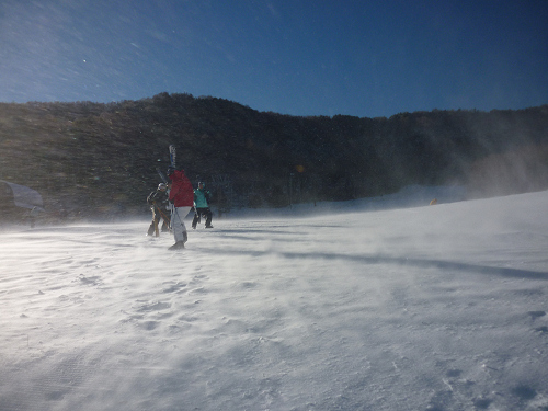 昨年と同じような場所で転倒を繰り返し、まったくレベルアップして無い事を確認。粉雪が積もっていたとはいえ、前日の雨の影響でカリカリだった。