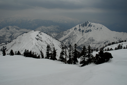 天気が崩れて山頂で暴風雨となる。雨が止むのを待って雲の流れを見ながら急いで下山したが、駐車場に戻ったとたんに雷が鳴り始めた。