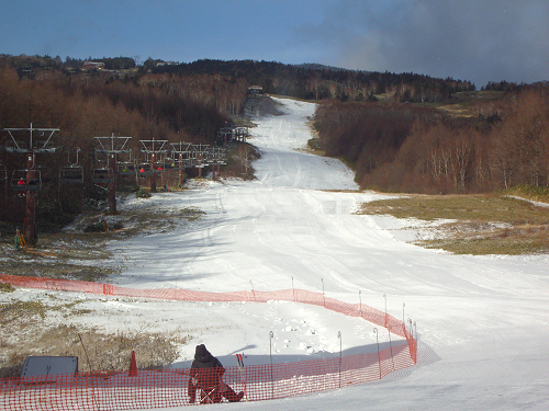 気温が下がらず降雪機が順調に動かなかったようで雪の少なさにビックリ。1時間ほど滑って退散するが、物足りない1日だった。