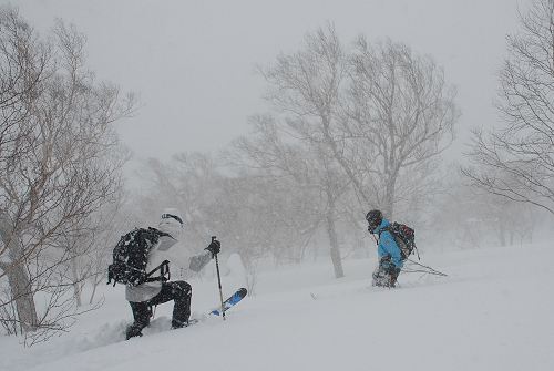 シールトラブルで途中でラッセルリタイヤ。後方待機で様子を伺うが、Team武田は余裕の表情で稜線まで導いてくれた。 しかし、雪が降りすぎて帰りもラッセルする事になり、昨年の教訓を生かせなかった。