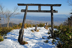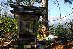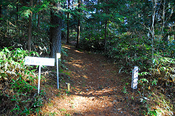 峠に到着すると「大和田奥社参道」と「下山道」の標識があった。期待していた唐沢山に登るルートは無く、どうやら藪こぎになりそうな予感がしてきた。