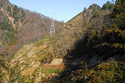 峠の林道に下る道が見つからず、適当に下って獣道みたいな作業道を利用する。
