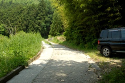 しばらくすると林道が行き止まりとになり、古い標識があった。 ここからコルを目指して登れば良いのだが、尼巌山が近そうなのでカメラとGPSだけ持って出発する。