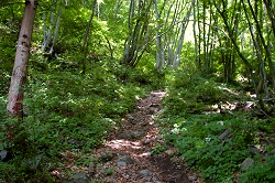 しばらくすると急登が始まる。トラロープもあって滑りやすい斜面が続く。しかし、それほど長くは続かない。