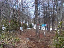 二度上峠登山口(10:55)〜尾根上(11:03)〜最初の分岐(11:07)〜頂上(11:56)〜二度上峠登山口(12:44)