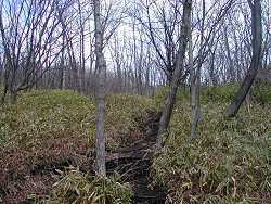 鞍部から同じような急登が続き、熊笹も多くて山頂付近まで同じような景色が続く。