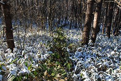 別荘地を直進して牧場へと向かうが、ショートカット出来そうな遊歩道があったので、ちょっと曲がって進んでみるものの、まったく見当違いの場所へ行ってしまい、仕方なく笹薮の中へ突入する。歩いてきた跡がしっかり残り、迷わず帰ることも出来るが、なかなか登山道に合流できず、だいぶ時間のロスをしてしまった。 |