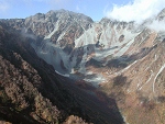 杣添尾根から横岳、赤岳と縦走して県界尾根を下るが、膝のトラブルで後ろ向きに下山する。