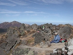 登り始めは雨だったが、だんだん晴れてきて山頂で快晴になった。