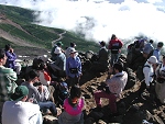 お盆だったので、人、人、人。観光客が多く、登山者の姿で歩くと恥ずかしい。