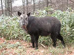 道路脇で笹を食べるカモシカを発見。車で近くに寄っても逃げなかった。