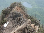 丁須の頭に登るが怖くて立てない。頭の上から見る景色は恐ろしい・・・