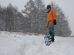 初めてスノーシューで山に登った。猛吹雪で山頂付近の視界が悪く早々に下山する。カッパとフリースが凍って脱ぐことが出来なかった。