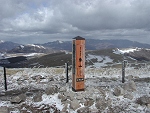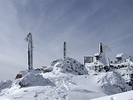 富士山に行く途中、雨が降ってきたので長坂ICで下りて野辺山経由で帰ろうと車を走らせると、天女山の標識があった。道路地図にも載っており、山頂付近まで道路が続いてるようだ。いったいどんな場所かと行ってみると、駐車場より標高が2mほど低い。立派な標識やトイレ、ベンチがあるけど、なかなか三角点が見つからない。晴れえていれば景色が良さそうな場所だったけど雪が降っていて残念だった。 |