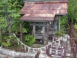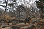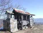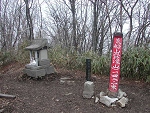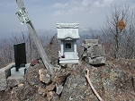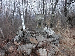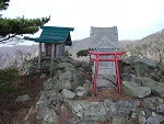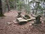 一直線に続く急登を登りきると古い祠があった。地元の人の話によると、この先に山城があったそうだ。 |