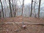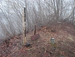 展望が良い山頂だと想像していたが、訪れる人が少なく雑然としていた。朽ちかけた鏡台山の標識が、この山の寂しいような印象を与えていた。 |