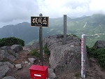 ガスで視界が悪く、最高峰の砂鉢山を通り過ぎてから間違いだと気付いた。 |
