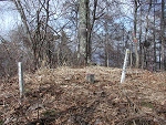 友人宅から見える峰雄山は登山道らしき登山口が存在せず、適当に検討をつけて登ってきた。あまり人が訪れないような山だったが、空き缶や境界を示す杭など、そこそこ誰かが登ってるようだ。山頂には三角点を計測した跡が残され、トタンで作った峰雄山の標識もあった。「新ハイ○部支部」と書かれているが、○の部分は分からない。だいたい20年ぐらい前の物だろう。 |