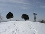 夕刻が迫り、急いで山頂へ。展望が良い山かと思っていたが樹木が邪魔して良く見えない。 |