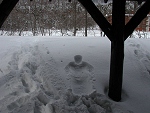 湯の丸キャンプ場で1泊してから湯の丸山に登った。初めてウサギが掘った雪洞を見た。 |