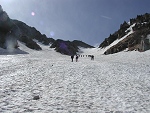 日本三大雪渓の針ノ木雪渓を登り、針ノ木岳と蓮華岳に登る。午前中は晴れていたが蓮華岳で土砂降りとなり、アイゼンを持ってこなかったので雪渓の下りで苦労をする。雪渓で滑落する人を見た。 |