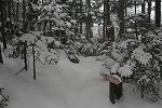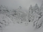 年末で入山者が多いかと思えばちと早すぎて、前日に降った雪をラッセルしながら進んだ。「ラッセル泥棒」とは言えない登山だった。11月のような大雪を想像していたが、湿った雪がギュッギュッ鳴って気持ちい。大型のスノーシューは役不足。ワカンを持ってくるべきだったと後悔した。 |